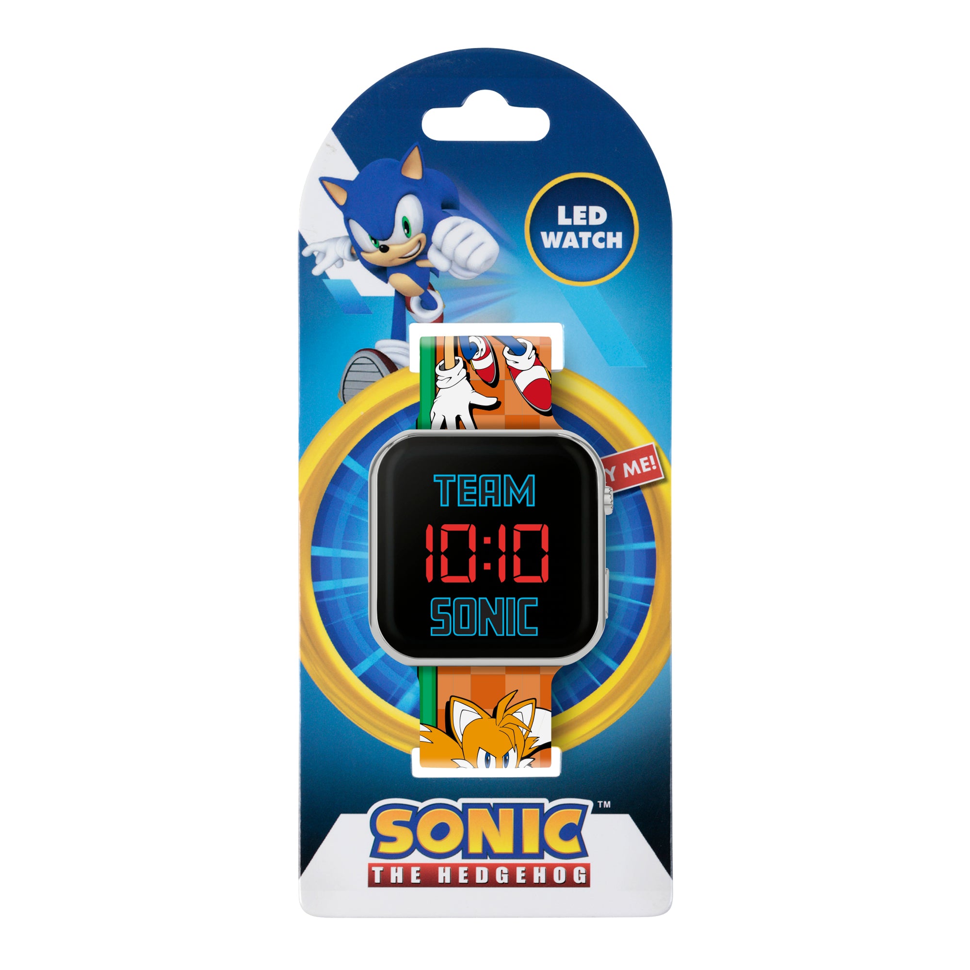 Featuring a Sonic design dial, plastic casing, red digital display and fun printed strap with traditional buckle fastening.