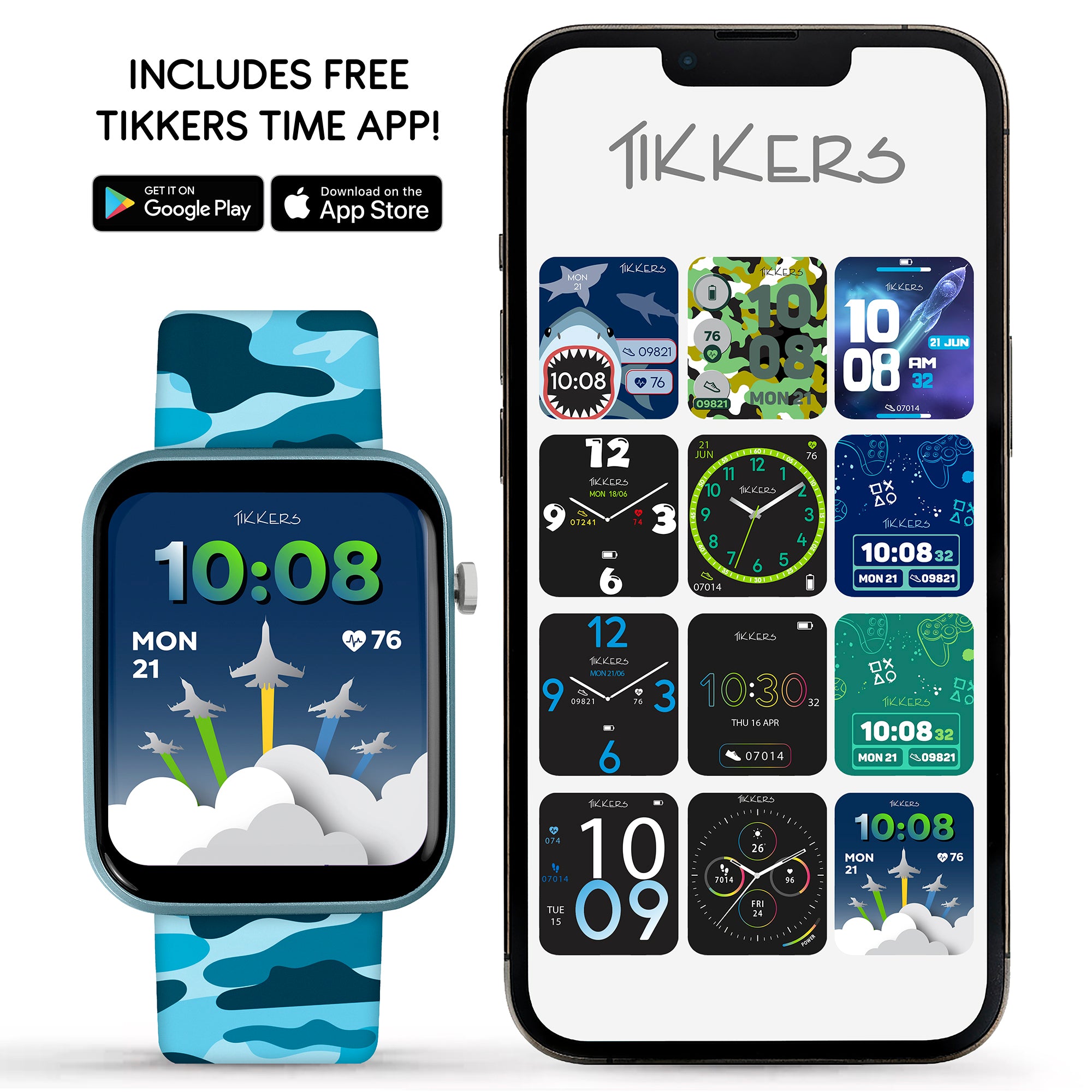 This watch has an interchangeable silicone strap to fit all wrist sizes comfortably, keeping them connected and stylish wherever they go. The free Tikkers Time app is designed to enhance your Tikkers experience. Presented in a great gift box, including charger. IP68 Water Resistant.
