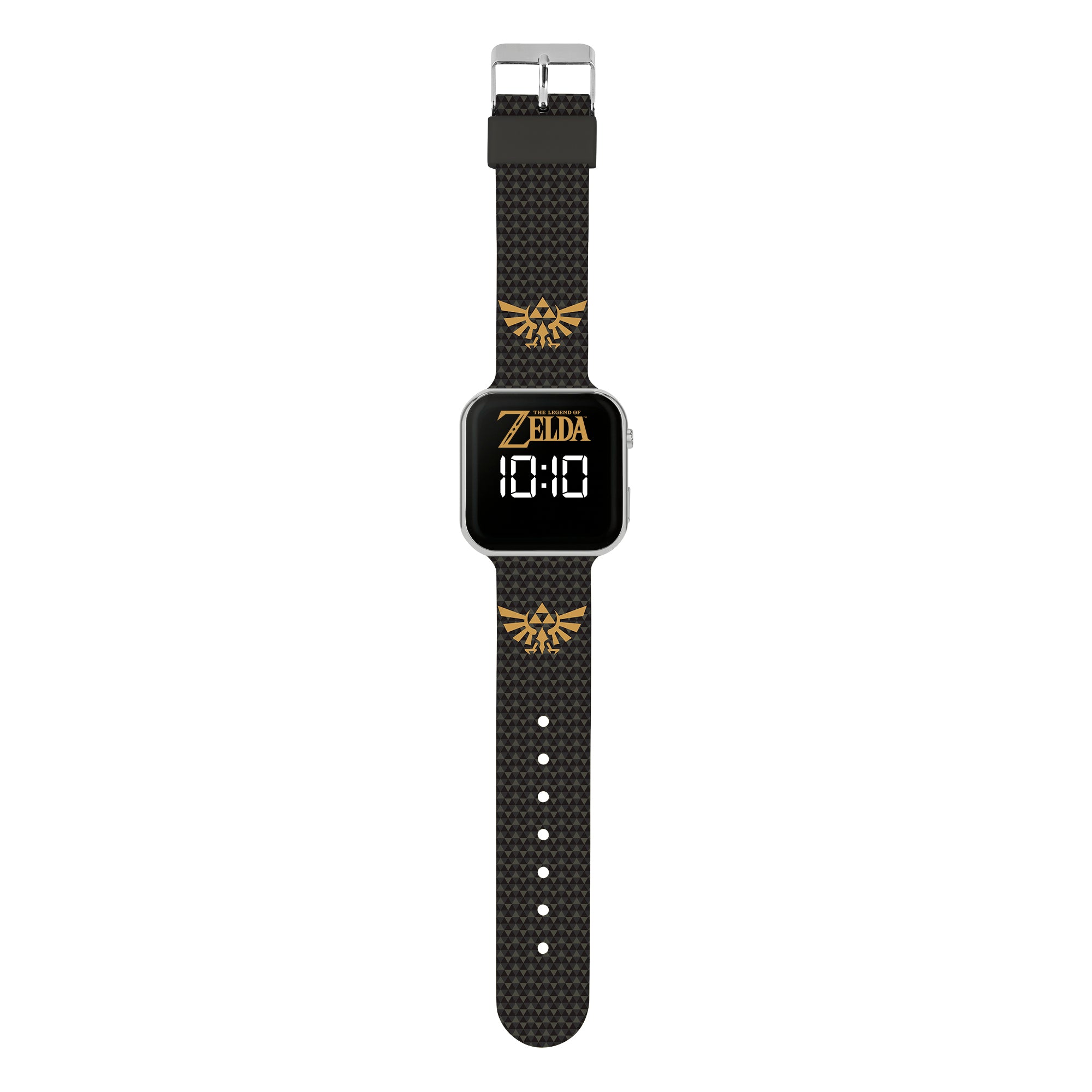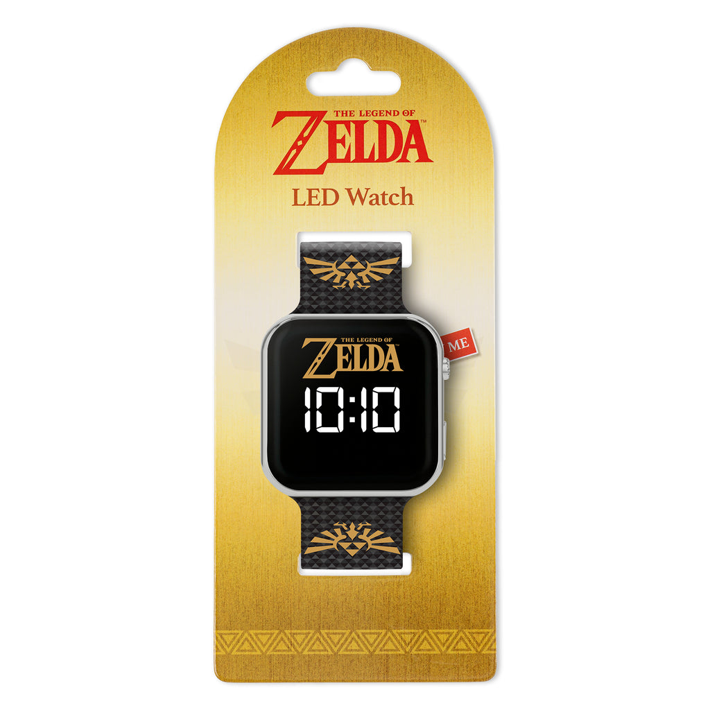 The Legend of Zelda LED watch with Zelda dial design, silver plastic casing, digital light up display and fun printed strap design with traditional buckle fastening.